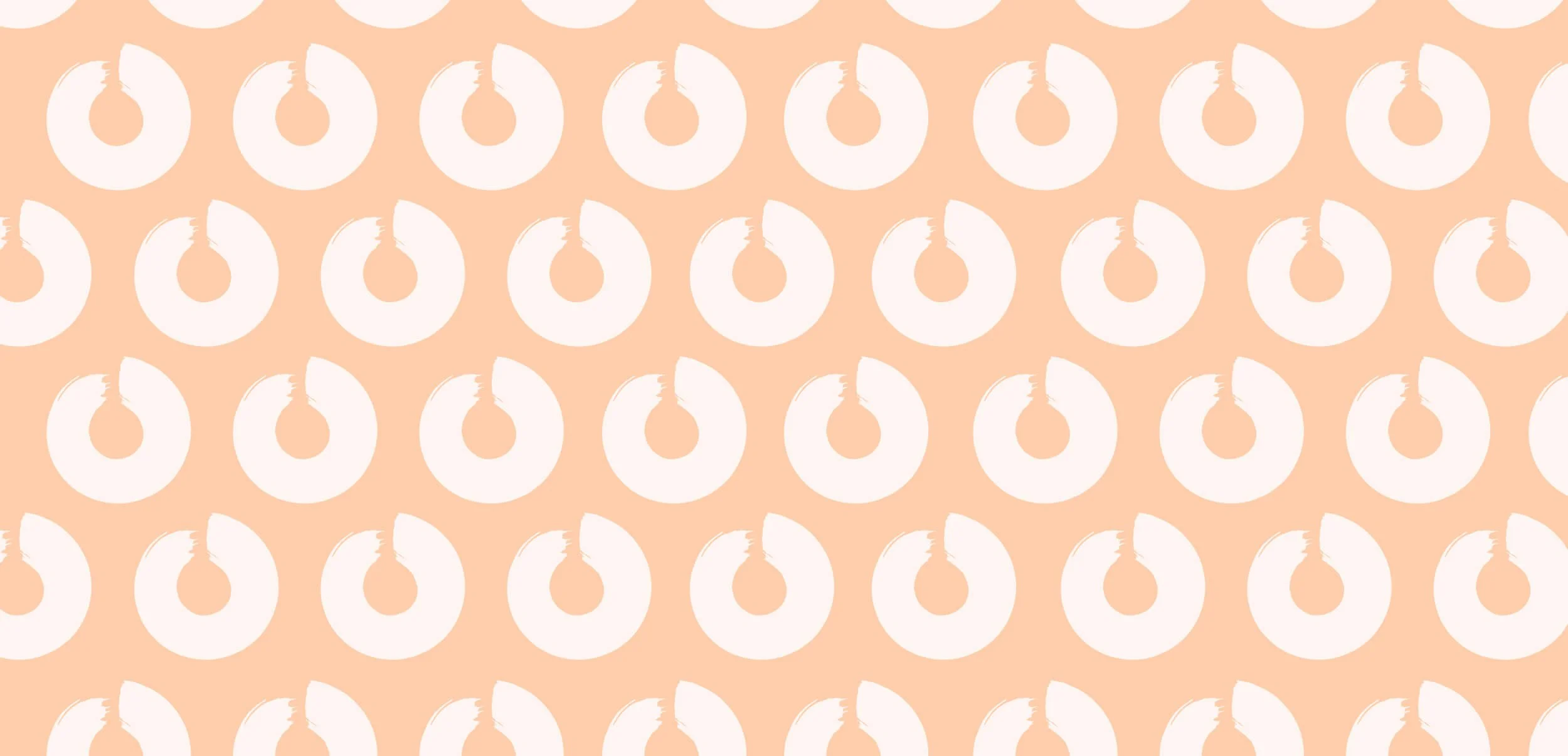 A stylized peach-colored infinity symbol with a brushstroke texture.